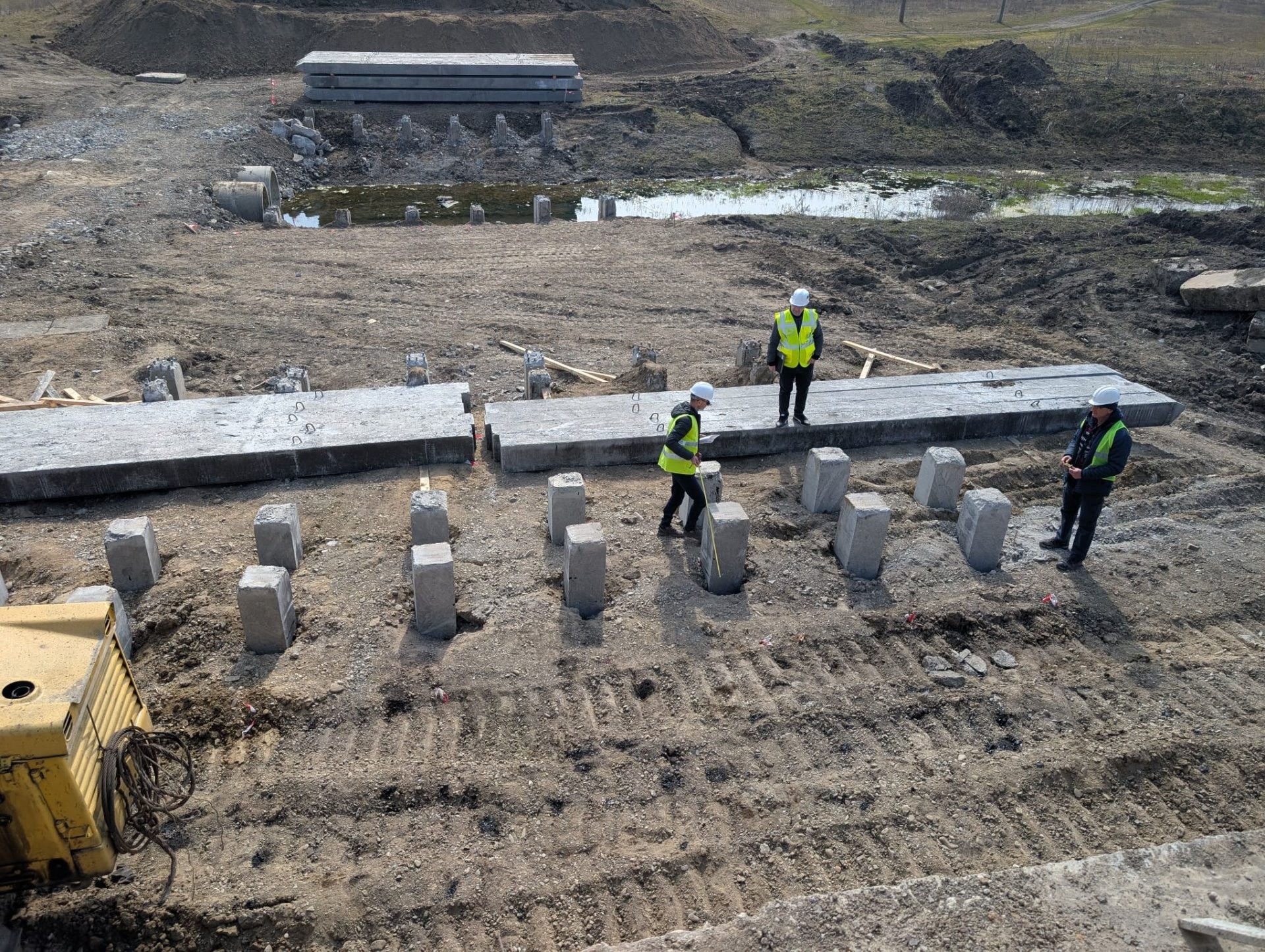 În faza actuală, la culeea nr. 1 au fost deja bătuți 22 din cei 24 de piloți prevăzuți. În total, proiectul de execuție stipulează instalarea a 88 de piloți pentru cele două culee și cele două pile ale podului. Concomitent, se desfășoară lucrări de armare a stâlpilor, în proces fiind mobilizați 18 muncitori și patru utilaje specializate, indică sursa citată.