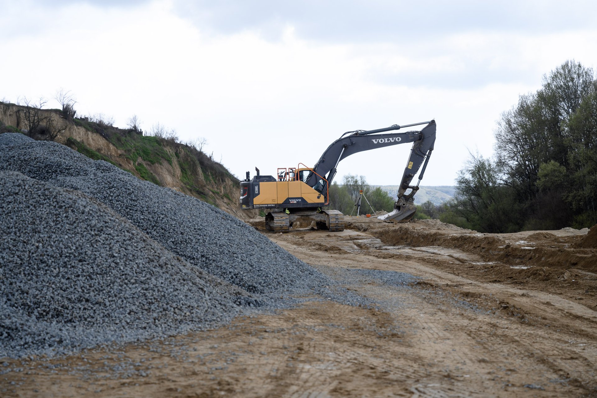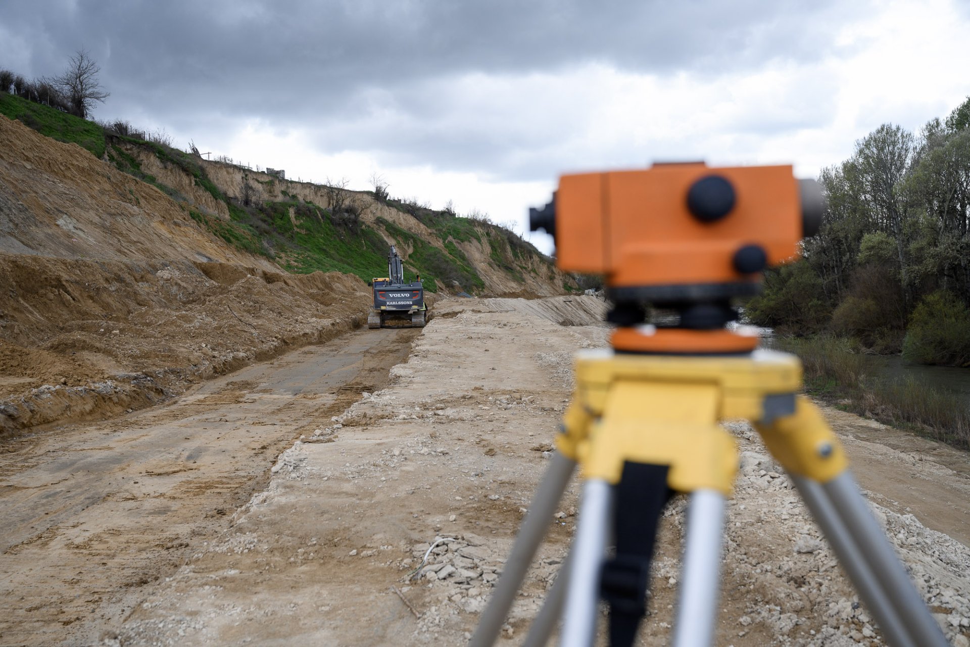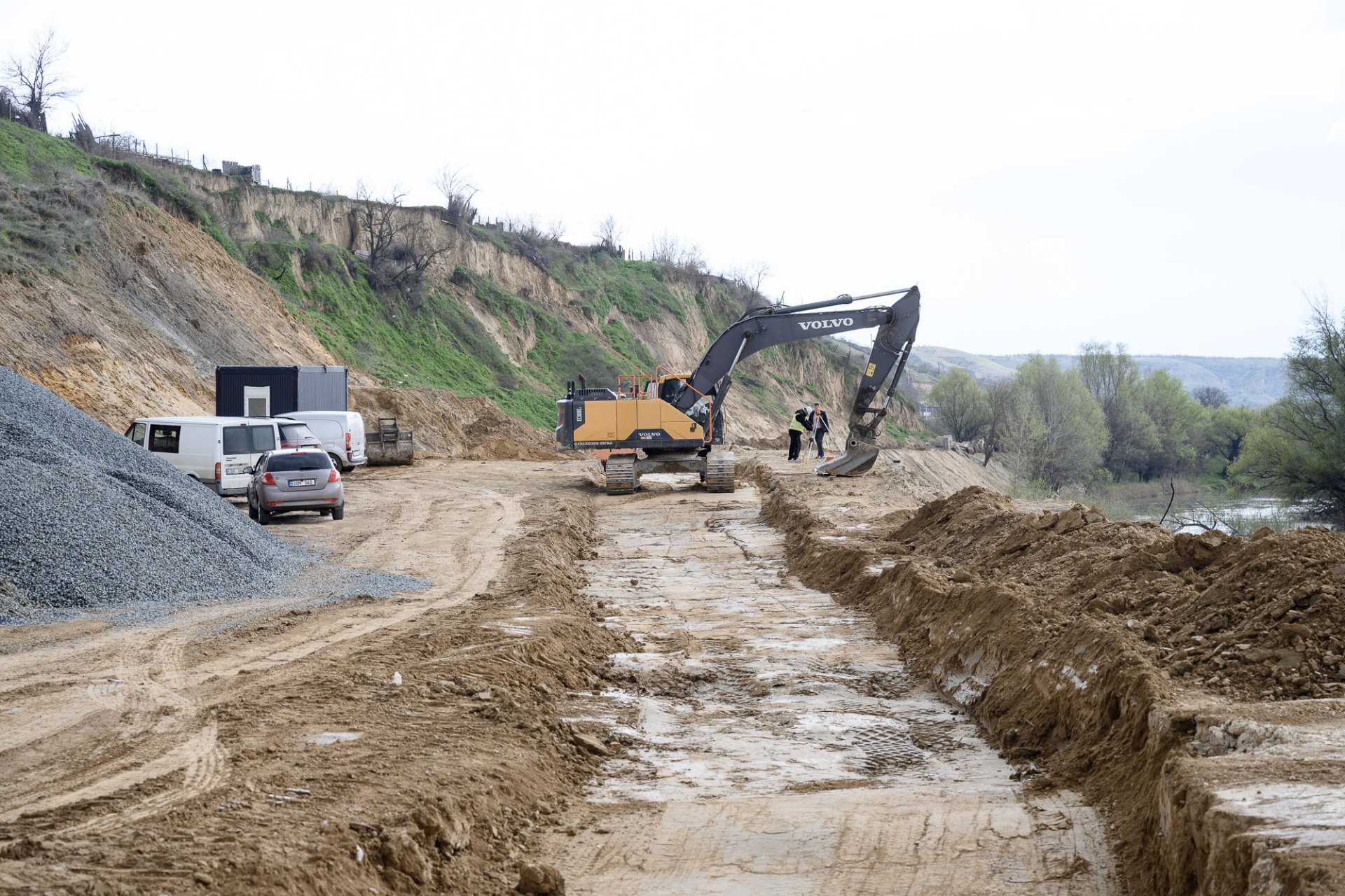Consolidare cu beton: Aproximativ 8.000 de tone de beton au fost turnate pentru formarea piloților de susținere care stabilizează malul și versantul.