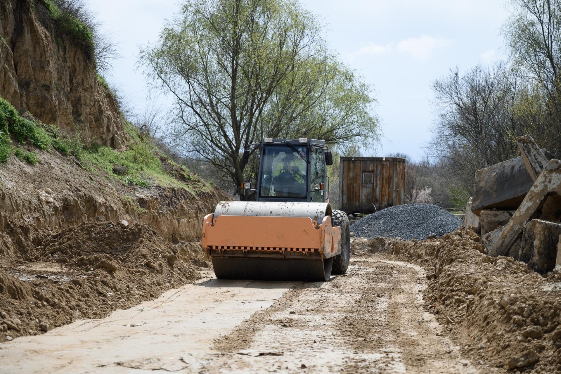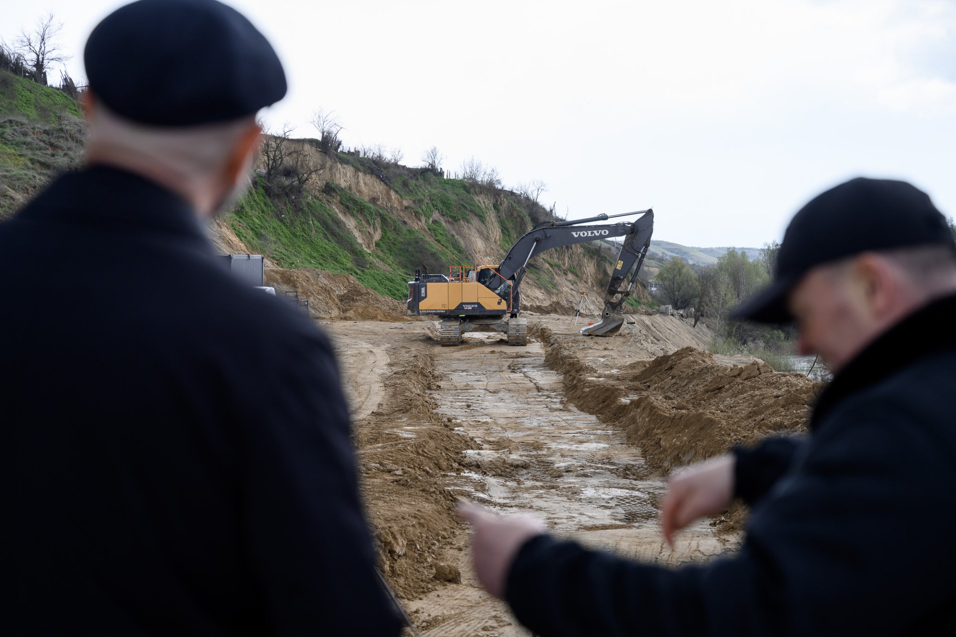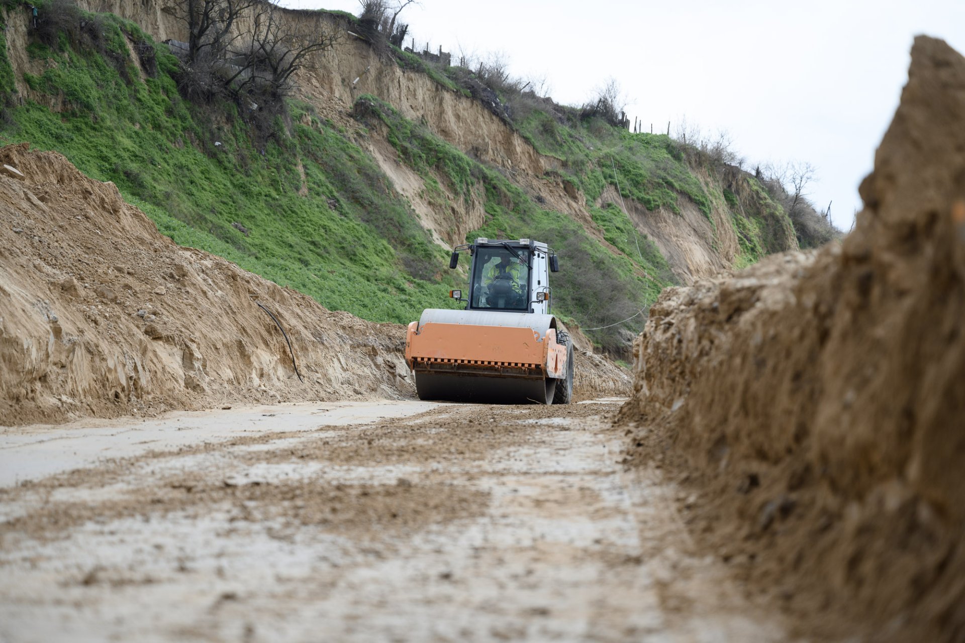 Consolidare cu beton: Aproximativ 8.000 de tone de beton au fost turnate pentru formarea piloților de susținere care stabilizează malul și versantul.