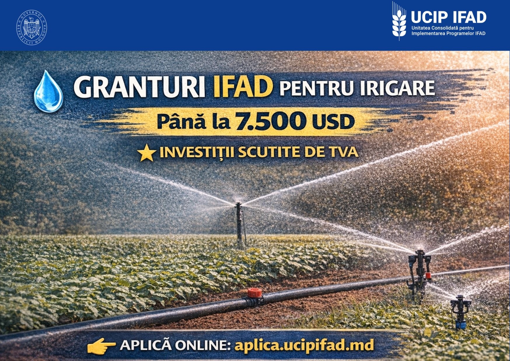 Granturi IFAD de până la 7500 de dolari pentru echipamente moderne de irigare. O nouă oportunitate pentru fermierii din Moldova