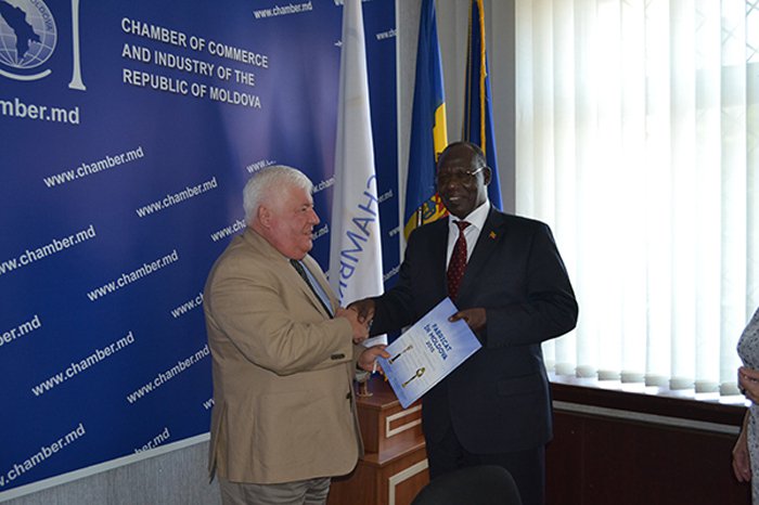 Chişinău, 26 aug. /MOLDPRES/. Dezvoltarea relațiilor economice dintre Republica Moldova, Uganda și Ghana, precum și posibilitățile de intensificare a schimburilor comerciale ale ţării noastre cu cele două state au fost discutate în cadrul întrevederilor desfăşurate ieri la Chişinău de vicepreşedintele Camerei de Comerţ şi Industrie Vladimir Didilica cu Ambasadorul Republicii Uganda în Federaţia Rusă Moses Ebuk și Ambasadorul R. Ghana în R. Moldova, cu reședința la Moscova, Kodzo K. Alabo, informează MOLDPRES cu referire la surse de la CCI.
