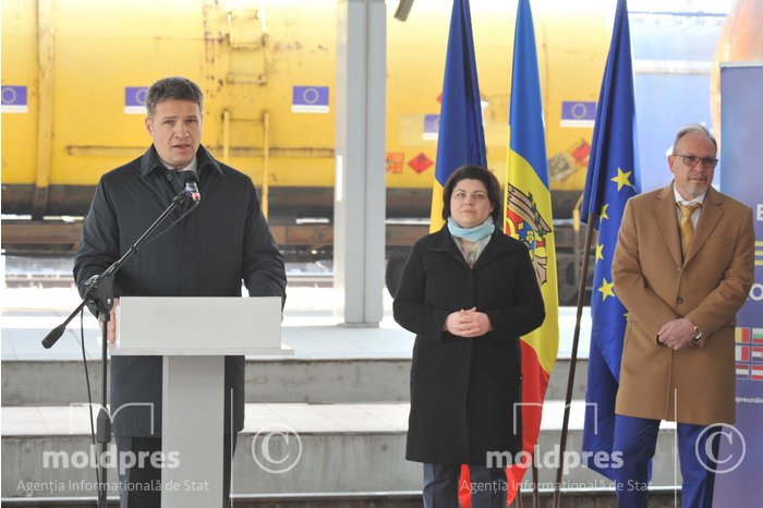 La rândul său, ambasadorul României la Chișinău, Daniel Ioniță, a spus că în vremuri grele se trece mai ușor împreună prin situații dificile”. “La finele anului trecut de pe peronul gării Chișinău a plecat o garnitură de tren către București care marca reluarea cursei regulate de pasageri Chișinău-București-Chișinău. De această dată, garnitura de tren sosește la Chișinău de la București aducând cu ea prima tranșă din cele 5000 de tone de păcură care sunt echivalentul a 3,5 milioane de euro. Este căldura României acordată Republicii Moldova”, a declarat Ioniță.