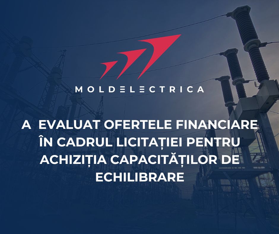 Întreprinderea de Stat Moldelectrica a anunțat finalizarea etapei de evaluare a ofertelor financiare depuse în cadrul procedurii de licitație destinată achiziției capacităților de echilibrare de la potențiali furnizori de servicii de echilibrare, transmite MOLDPRES.