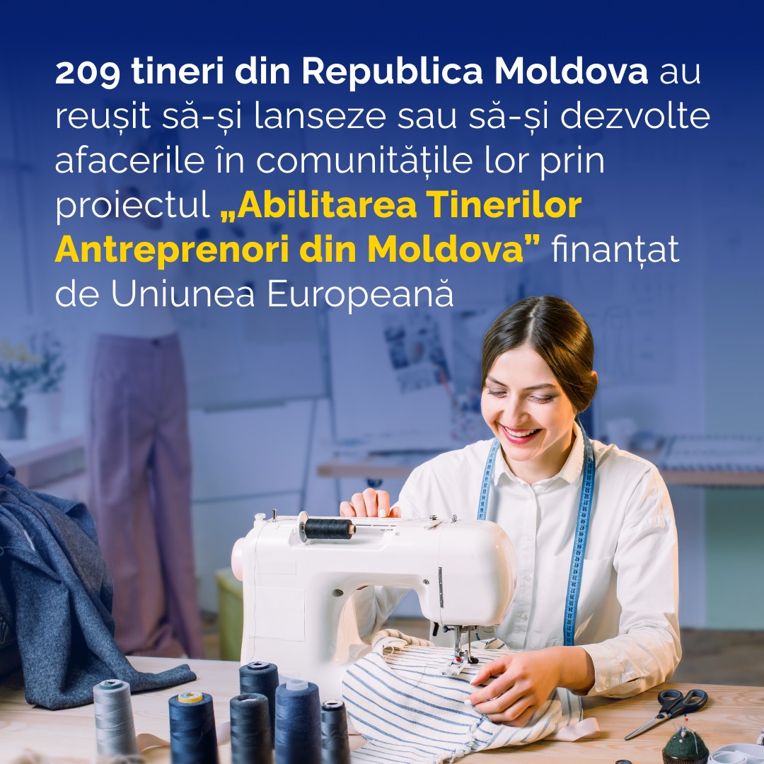 Peste 200 de tineri din Republica Moldova au reușit să-și lanseze sau să-și dezvolte afacerile în comunitățile lor prin proiectul „Abilitarea tinerilor antreprenori din Moldova”, finanțat de Uniunea Europeană, transmite MOLDPRES.