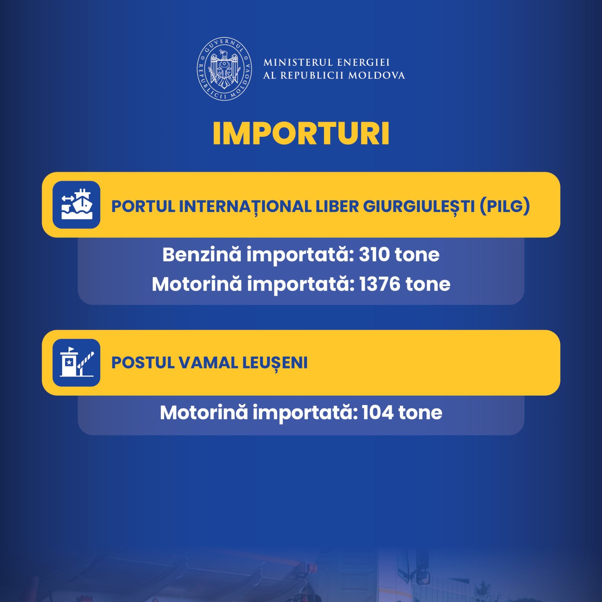 Peste 1400 de tone de motorină și 400 de tone de benzină au fost importate joi, 26 martie, în Republica Moldova. Informațiile au fost prezentate astăzi de Ministerul Energiei, transmite MOLDPRES.