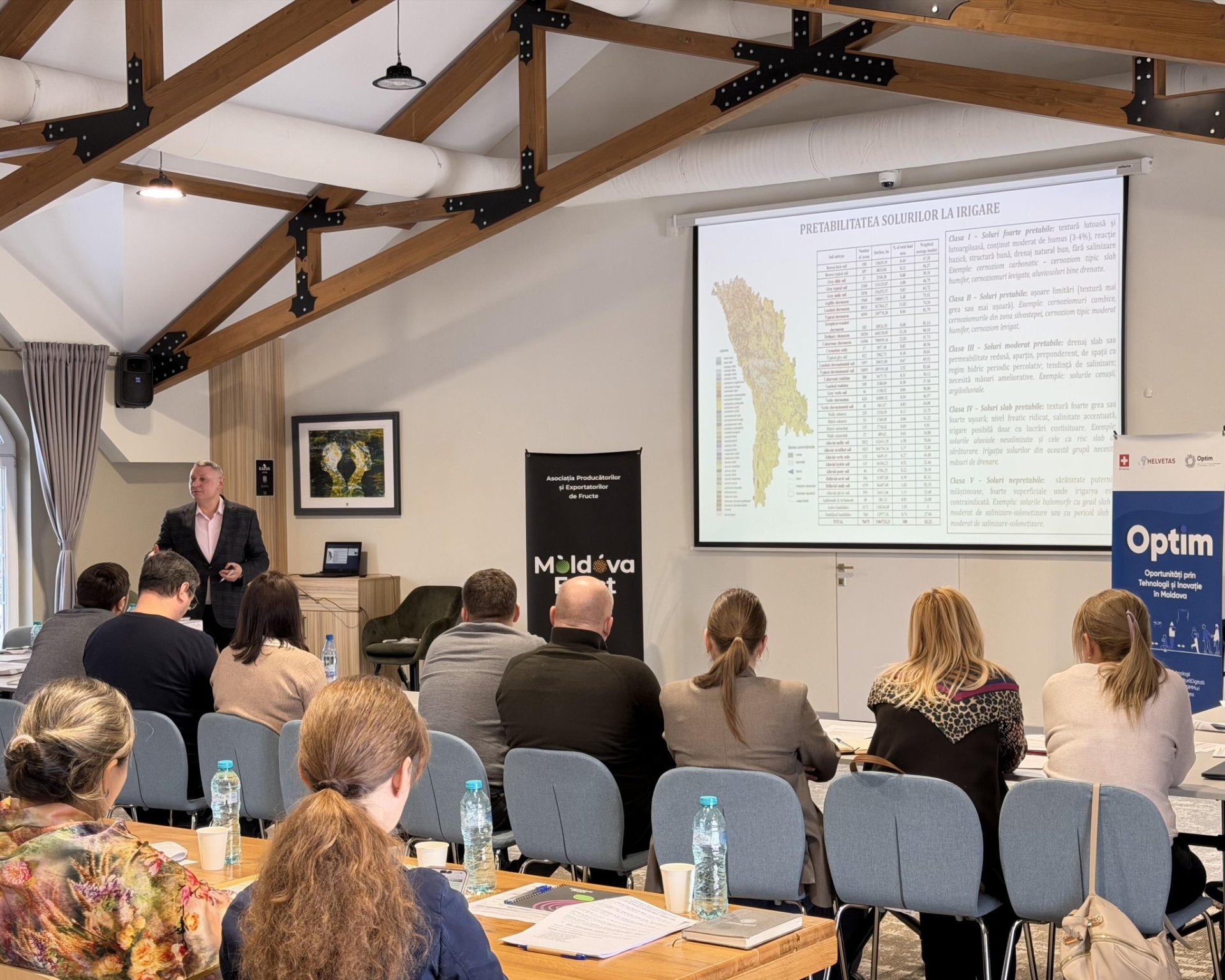 Seminarul a fost organizat de Asociația Moldova Fruct, cu sprijinul Elveției și al organizației Helvetas, în cadrul proiectului OPTIM, și face parte dintr-un efort mai larg de adaptare a agriculturii moldovenești la condițiile climatice tot mai aride.