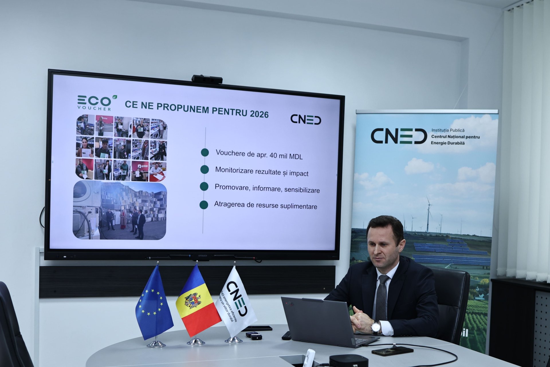 Directorul CNED a anunțat că programul EcoVoucher va continua și în 2026, fiind planificat un buget de aproximativ 40 de milioane de lei.