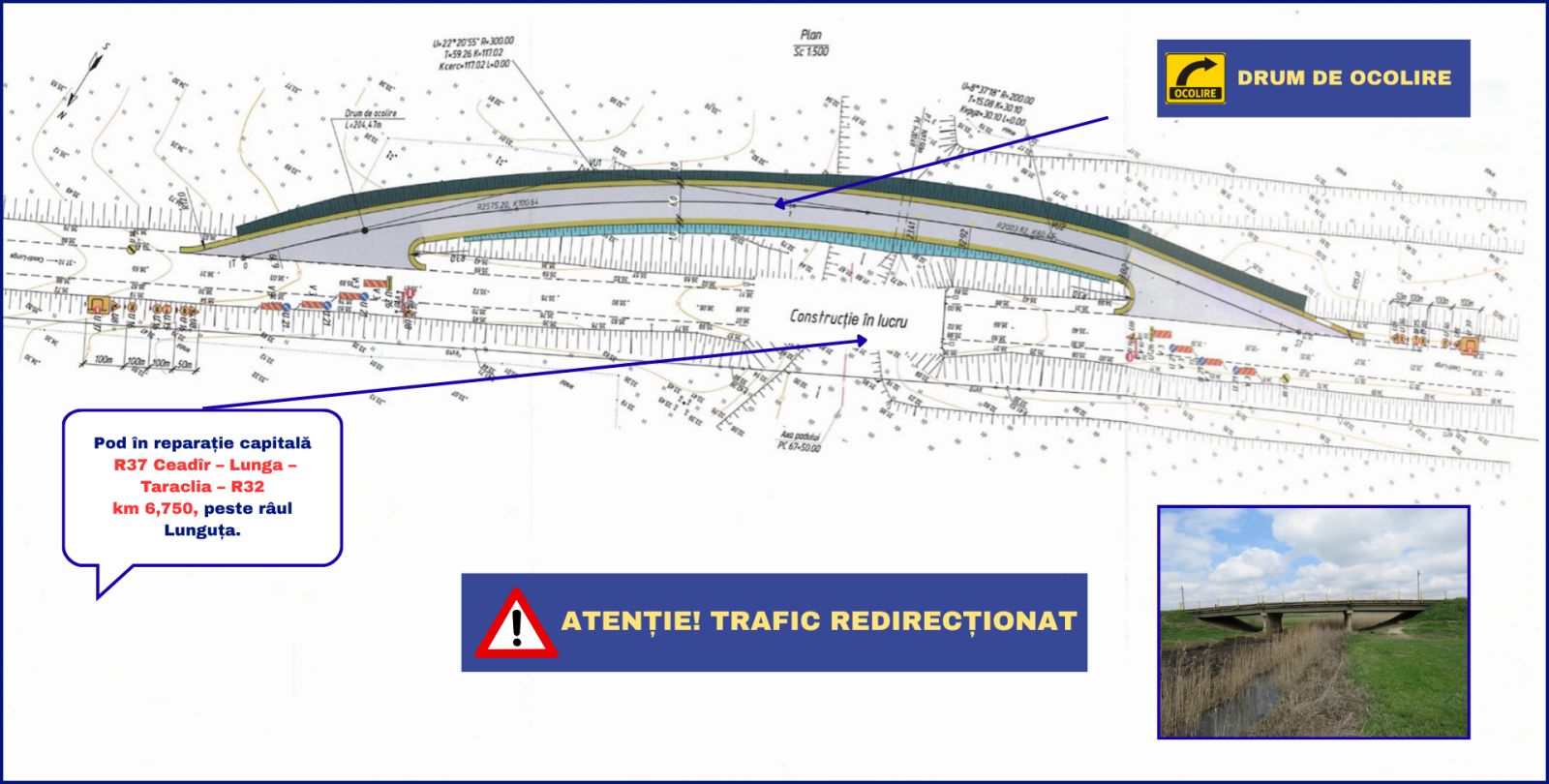 Administrația Națională a Drumurilor (AND) anunță restricții de circulație pe drumul republican R37, în apropierea localității Corten, raionul Taraclia. Începând cu data de 21 aprilie 2026, traficul rutier va fi redirecționat pe un drum de ocolire temporar, pentru a permite începerea lucrărilor de reparație capitală a podului situat la kilometrul 6,75, transmite MOLDPRES.