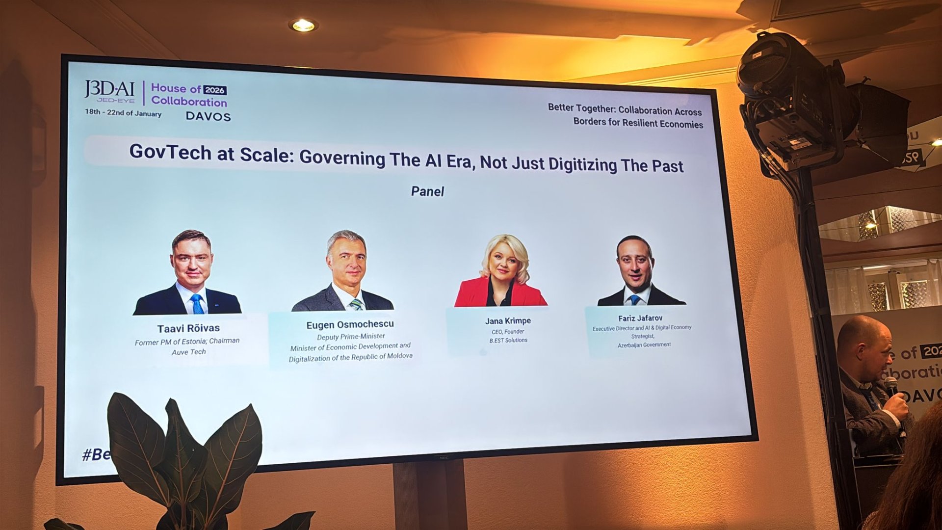 Republica Moldova a obținut progrese semnificative în domeniul digitalizării, iar autoritățile își propun ca în continuare să accelereze inovația, să valorifice noile tehnologii și să consolideze poziția Republicii Moldova ca un lider regional în domeniul guvernării digitale. Mesajul a fost transmis de vicepremierul Eugeniu Osmochescu, ministru al Dezvoltării Economice și Digitalizării, care a participat, la Davos, la panelul dedicat GovTech în cadrul Estonia Davos House: „GovTech la scară largă: Guvernarea erei IA, nu doar digitalizarea trecutului”, informează MOLDPRES.