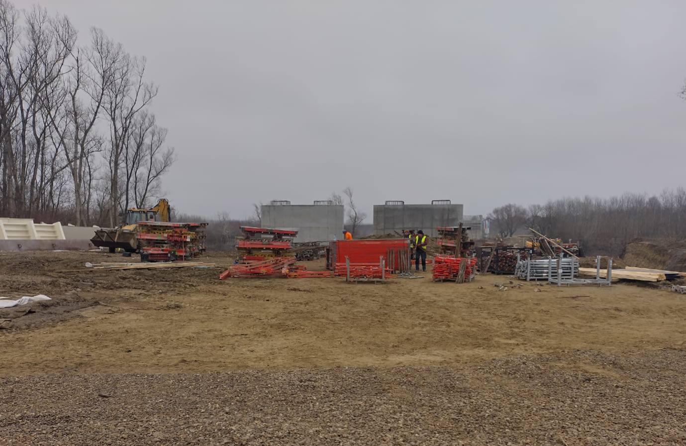 În același timp, pe malul moldovenesc sunt executate umpluturi la culeea C2, precum și lucrări de umpluturi, cofrare și armare la elevația pilei P2, componentă centrală a structurii de susținere.