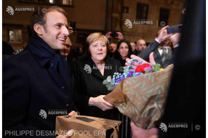 Macron şi mulţimi adunate pe străzi au întâmpinat-o pe Merkel în oraşul burgund Beaune, unde ea a sosit la sfârşitul după-amiezii.