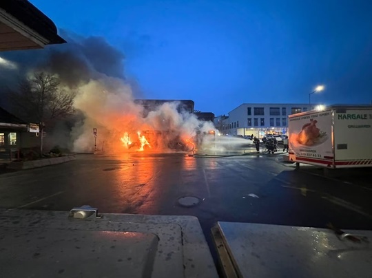 Un elicopter de salvare a fost văzut la faţa locului, potrivit cotidianului. Poliţia a închis piaţa şi a cerut locuitorilor să evite zona. Vehiculul, un Postbus, a ars complet.