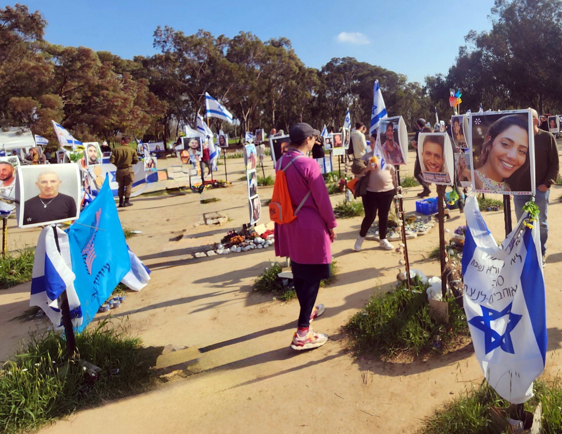 Între cactușii și eucalipții din deșertul Neghev, o frescă reprezintă portretele tuturor celor care au fost uciși la festivalul de muzică techno. În timp ce apropiații persoanelor ucise aprind lumânări, ecoul tirurilor de artilerie și al exploziilor se aude din Fâșia Gaza, teritoriul palestinian vecin, comentează France Presse.