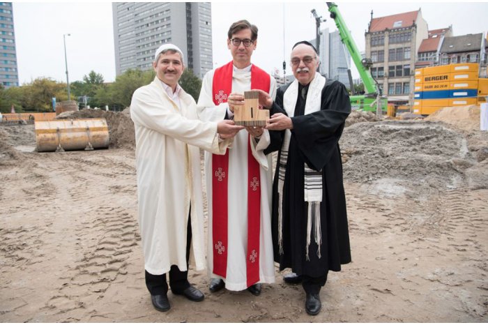 Imamul, pastorul şi rabinul unei ''Singure Case'' au dorit să vadă în aşezarea acestei prime pietre ''o etapă importantă către finalizarea proiectului nostru inter-religios de pace'', potrivit rabinului Andreas Nachama.