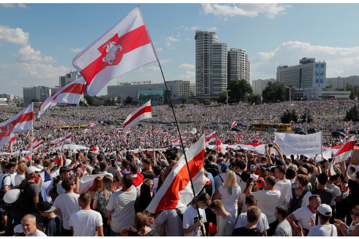 Minsk, 6 sep. /MOLDPRES/. Zeci de mii de persoane din Belarus au manifestat din nou duminică la Minsk pentru a denunţa realegerea preşedintelui Aleksandr Lukaşenko, care se confruntă de aproape o lună cu o mişcare de protest fără precedent, relatează AFP, citată de AGERPRES și MOLDPRES.