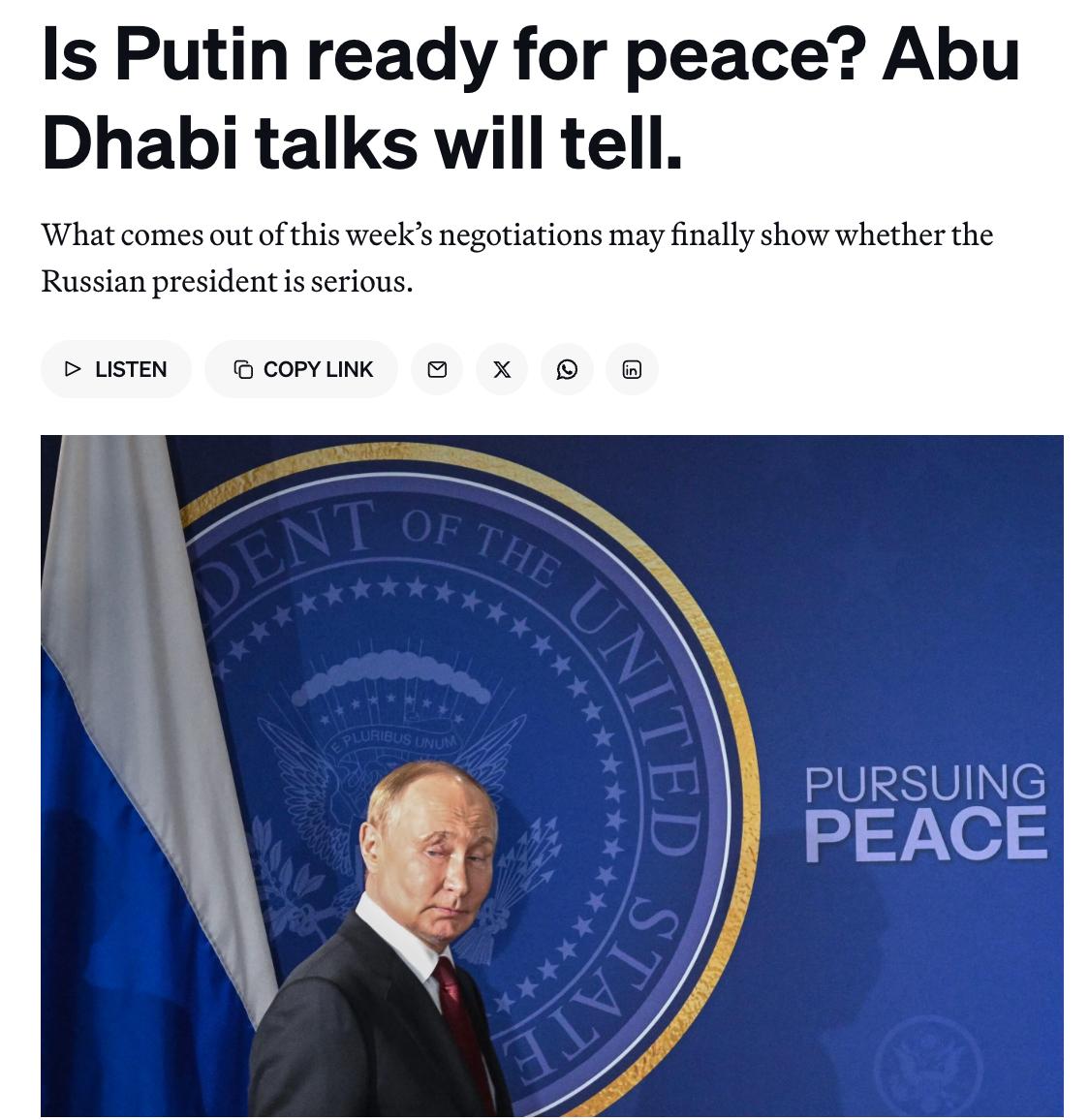 Politico: Negocierile de la Abu Dhabi ar putea deschide calea spre încheierea războiului din Ucraina în primăvară