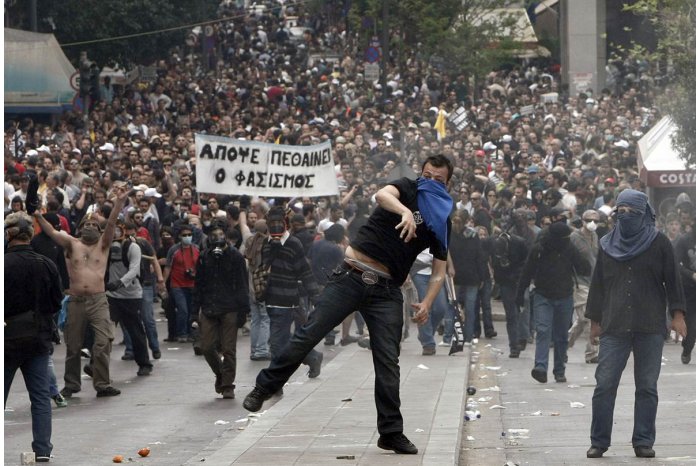 Protestatarii antiausteritate din Grecia au atacat cu pietre poliția, care a ripostat cu gaze lacrimogene
