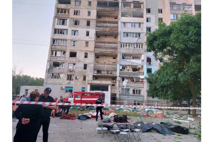 Serviciul de Stat pentru situații de Urgență al Ucrainei a transmis că o rachetă a lovit un bloc cu nouă etaje, aflat la aproximativ 80 km sud de oraș. În acest atac, 14 oameni au murit, iar 30 au fost răniți, inclusiv trei copii.