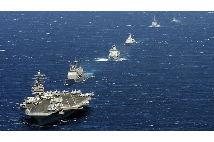 În apropierea grupului naval se află şi nava de comandă USS Blue Ridge, care se îndreaptă spre Filipine.