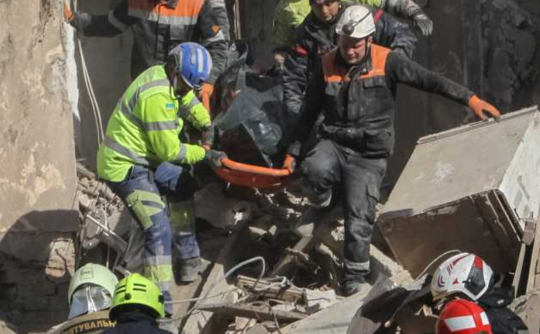 Fotografii și înregistrări video publicate de oficialul ucrainean arată o clădire în mare parte distrusă și echipe de salvare care scot un cadavru într-un sac negru.
