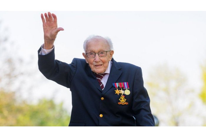 „Captain Tom”, care a luptat în Al Doilea Război Mondial, a reuşit să strângă suma fără precedent de 33 de milioane de lire sterline (37 de milioane de euro) - omologată şi printr-un record înscris în Guinness Book - printr-o campanie în cadrul căreia şi-a înconjurat de 100 de ori, cu paşi mici şi folosind un cadru metalic, grădina casei sale din Bedfordshire. S-a întâmplat chiar înainte de a împlini vârsta de 100 de ani, la 30 aprilie 2020.