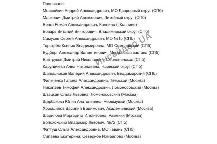 Printre deputaţii care au semnat petiţia se numără consilieri din Moscova şi Sankt Petersburg, precum şi primari din alte regiuni ale părţii europene a ţării şi Siberia.