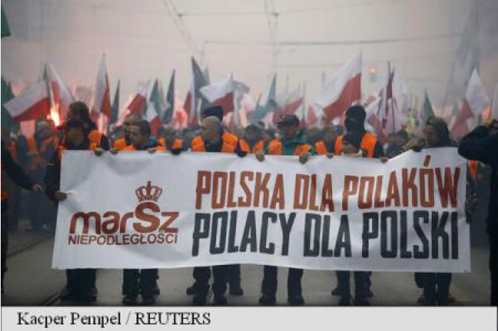 Varșovia, 11 nov. /MOLDPRES/. Zeci de mii de manifestanți - 25.000 potrivit poliției, 50.000 potrivit organizatorilor - au defilat miercuri la Varșovia, la apelul extremei drepte naționaliste, sub sloganul ”Polonia - polonezilor, polonezii pentru Polonia”, relatează AGERPRES și MOLDPRES cu referire la AFP.