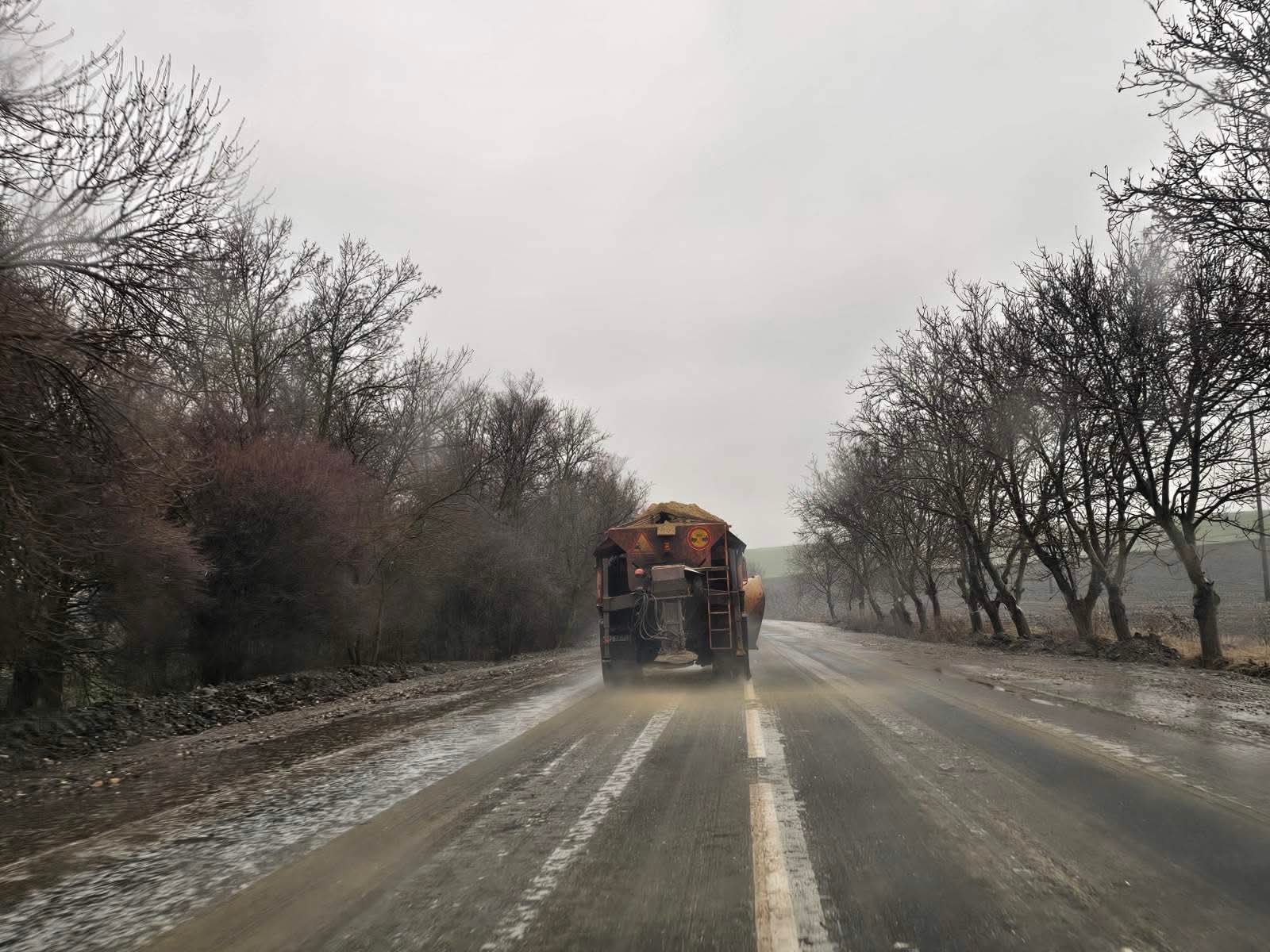 Ceață și ghețuș pe trasee: drumarii au intervenit cu lucrări de combatere a lunecușului