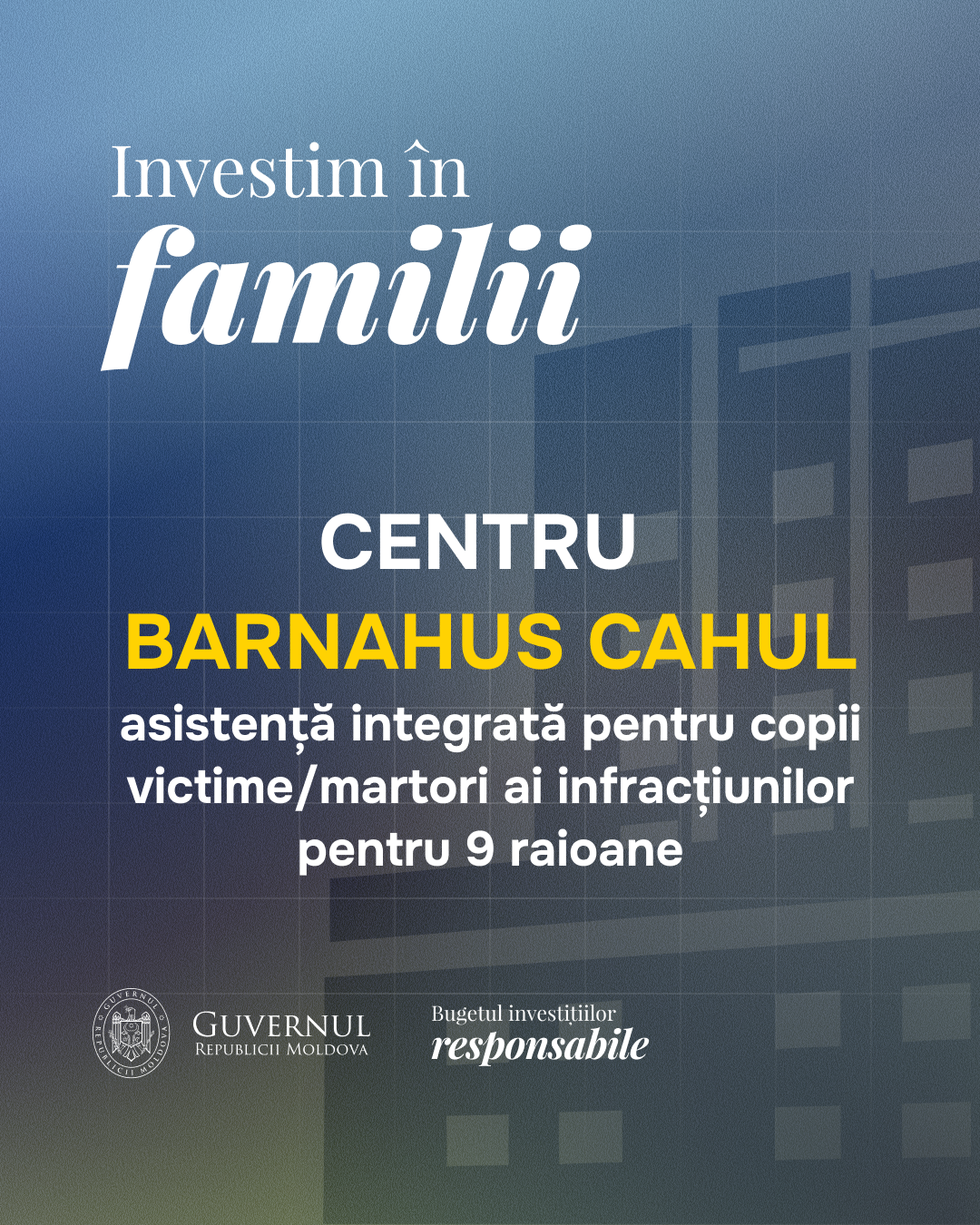 La Cahul, va fi deschis Centrul regional Barnahus, care va acorda asistență psihologică, juridică, medicală și socială copiilor victime/martori ai infracțiunilor. Centrul va oferi asistență beneficiarilor din 9 raioane - Cahul, Leova, Cimişlia, Comrat, Ceadîr-Lunga, Vulcănești, Basarabeasca, Cantemir, Taraclia.
