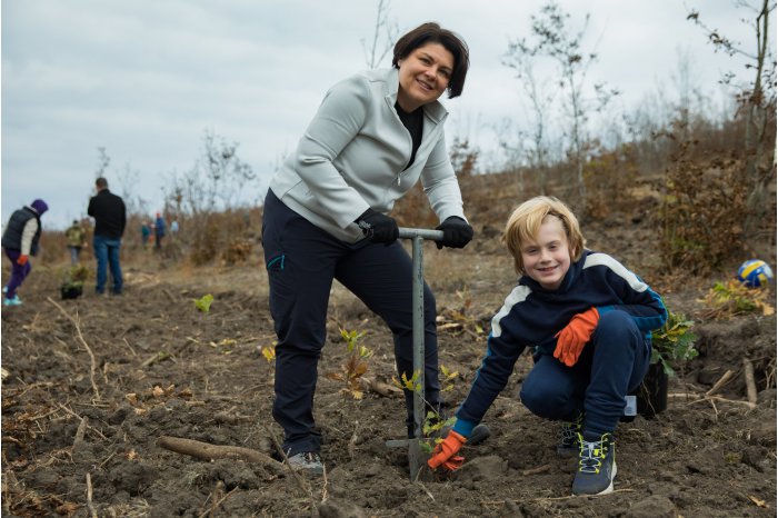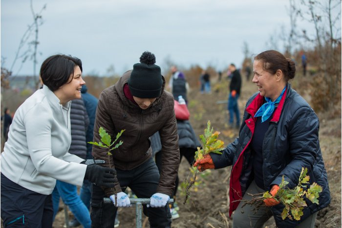 Chişinău, 5 nov. /MOLDPRES/. Astăzi, de Ziua națională a înverzirii plaiului, prim-ministrul Natalia Gavrilița, împreună cu secretarul general al Guvernului, Dumitru Udrea, și angajații Cancelariei de Stat, au plantat circa 15 mii de puieți de stejar, pe o suprafață de trei hectare din cadrul Ocolului silvic Căinari. Acțiunea s-a desfășurat în contextul lansării de Ministerul Mediului și Agenţia „Moldsilva” a campaniei naționale de înverzire a plaiului, cu genericul „Plantează-ți viitorul”, transmite MOLDPRES cu referire la Direcţia comunicare și protocol a Executivului.