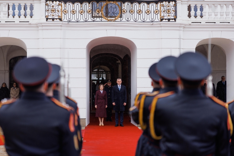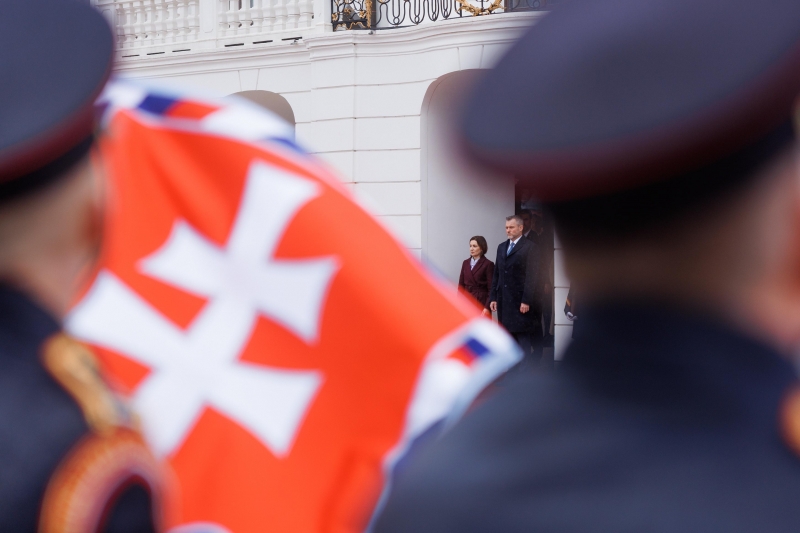 FOTO, VIDEO // Președinta Maia Sandu a fost întâmpinată la Bratislava de omologul său slovac, Peter Pellegrini