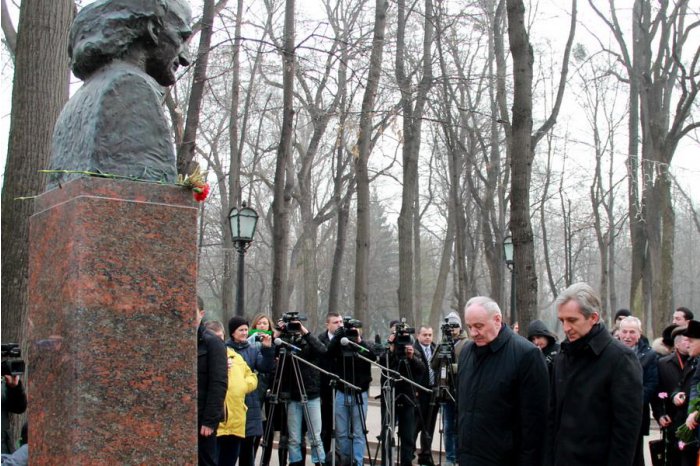 Şeful statului şi premierul în exercițiu au depus flori la bustul lui Grigore Vieru, cu ocazia aniversării a 80 de ani de la nașterea poetului