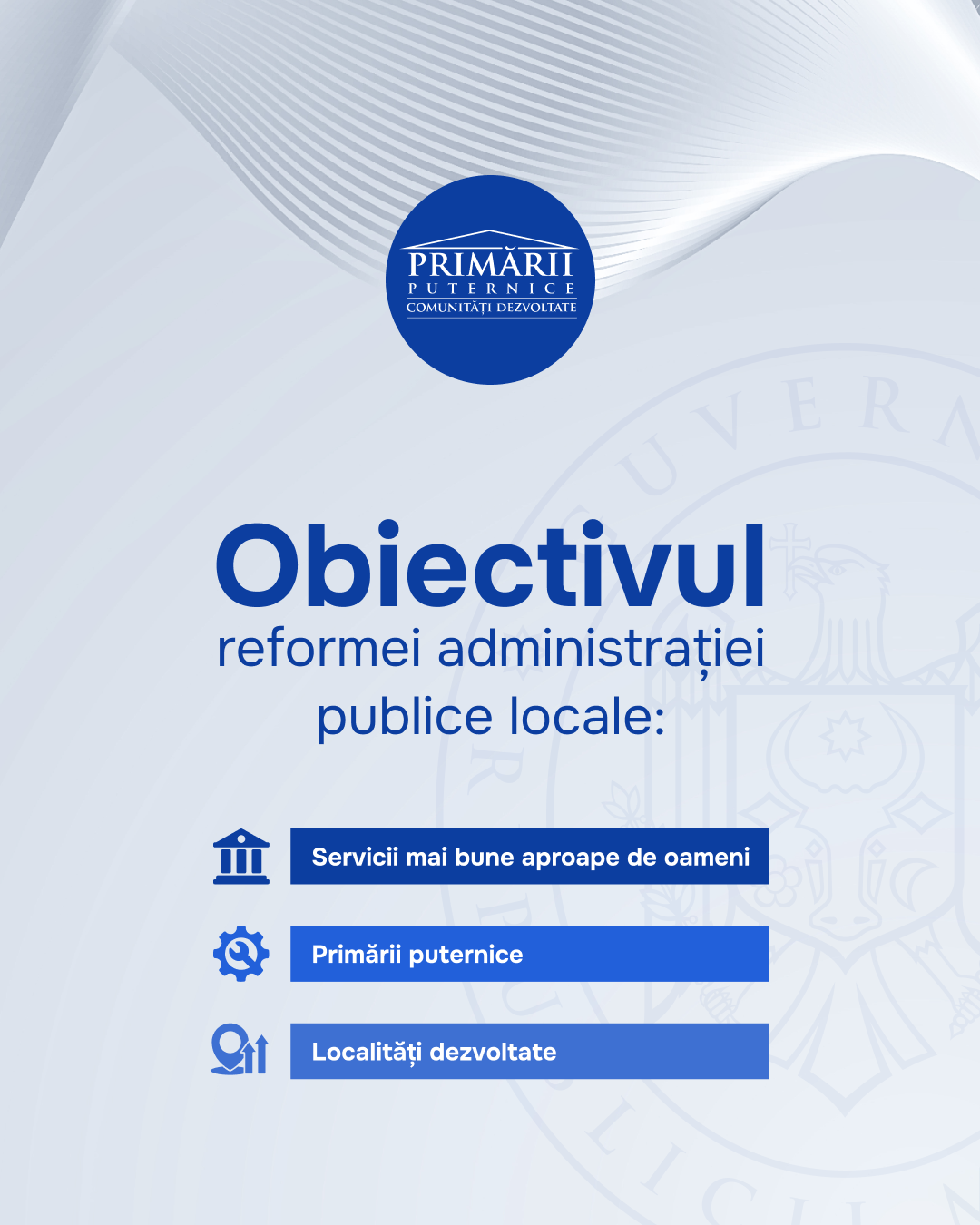 Guvernul începe procesul de pregătire a reformei administrației publice locale, cea mai importantă etapă fiind consultările largi. Obiectivul reformei este să construim localități dezvoltate, primării puternice și servicii mai bune, aproape de oameni. Consultările reformei au început astăzi, printr-o discuție cu membrii Congresului Autorităţilor Locale din Moldova.