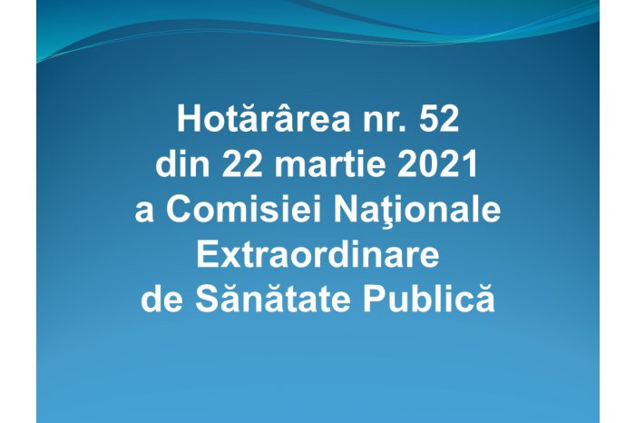 Hotărârea nr. 52 din 22 martie 2021 a Comisiei Naţionale Extraordinare de Sănătate Publică