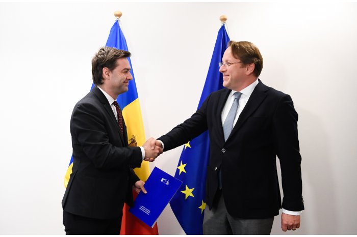 Chişinău, 11 apr. /MOLDPRES/. Comisarul pentru vecinătate și extindere Olivér Várhelyi i-a înmânat vicepremierului, ministrului Afacerilor Externe și Integrării Europene Nicu Popescu chestionarul Comisiei Europene cu privire la cererea de aderare la UE a Republicii Moldova. Răspunsurile care vor fi oferite întrebărilor din acest chestionar vor reprezenta radiografia situației de moment din țara noastră, arătând nivelul de pregătire pentru aderarea la Uniunea Europeană și, în același timp, vor evidenția domeniile unde sunt necesare eforturi suplimentare, relatează MOLDPRES cu referire la Biroul de presă al MAEIE.