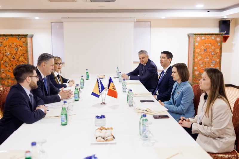 De asemenea, Președinta Maia Sandu a avut întrevederi cu Președintele Azerbaidjanului, Ilham Aliyev, Președinta Sloveniei, Nataša Pirc Musar, și șeful statului bosniac, Denis Bećirović. Discuțiile s-au axat pe consolidarea parteneriatelor bilaterale, cooperarea economică, inclusiv în domeniul energiei, și facilitarea accesului produselor moldovenești pe piețele externe.