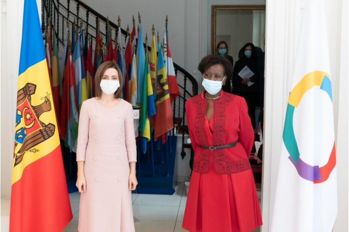 Chişinău, 5 feb. /MOLDPRES/. Cooperarea cu Organizația Internațională a Francofoniei (OIF), a cărei membră Republica Moldova este de peste 25 de ani, a constituit subiectul discuției pe care a avut-o Președintele Republicii Moldova, Maia Sandu, cu Secretarul General al Francofoniei, Louise Mushikiwabo. Întrevederea a avut loc în cadrul vizitei de lucru pe care șeful statului a întreprins-o la Paris la invitația omologului său francez, a relatat pentru MOLDPRES Serviciul de presă al Președinției.
