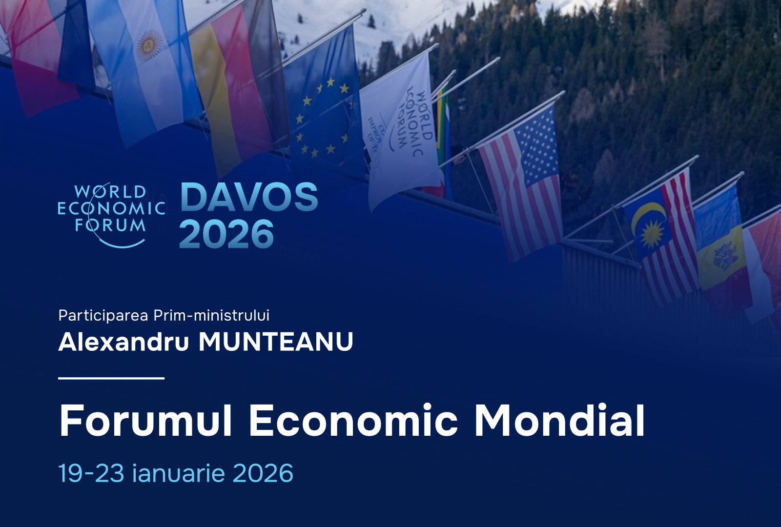 În perioada 19-22 ianuarie 2026, Prim-ministrul Alexandru Munteanu și Viceprim-ministrul, Ministrul Dezvoltării Economice și Digitalizării, Eugeniu Osmochescu, vor participa la cea de-a 56-a reuniune anuală a Forumului Economic Mondial de la Davos.