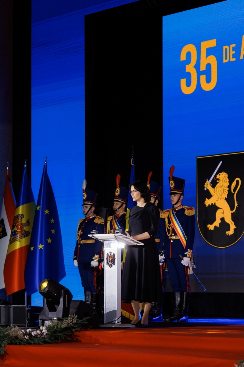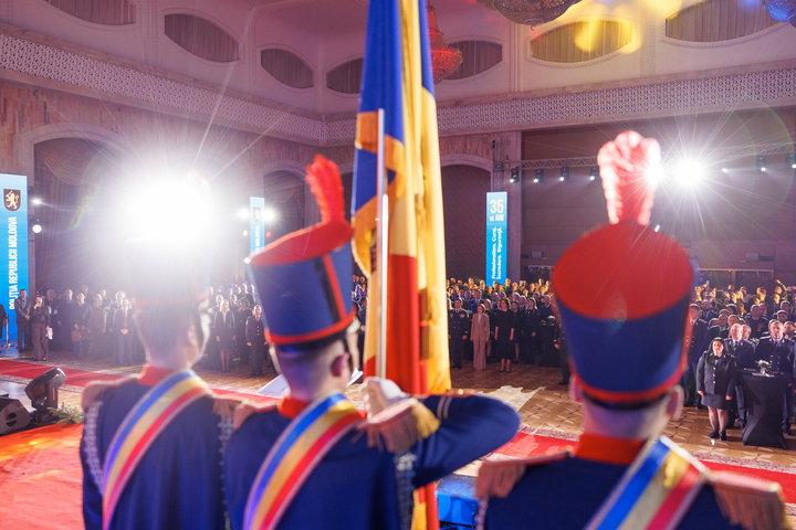 Șefa statului a subliniat că Poliția Națională a evoluat odată cu Republica Moldova, adaptându-se la un mediu de securitate tot mai complex, marcat de riscuri noi și amenințări hibride. ,,Ultimii ani au fost ani dificili pentru democrația și suveranitatea Republicii Moldova. Țara noastră a fost ținta unor tentative serioase de influențare a proceselor democratice, de cumpărare a voturilor și de subminare a încrederii oamenilor în stat. Iar voi, cei din Poliția Națională, ați fost în prima linie de apărare pentru ca viitorul Republicii Moldova să fie decis de cetățenii ei, nu de influențe externe.”