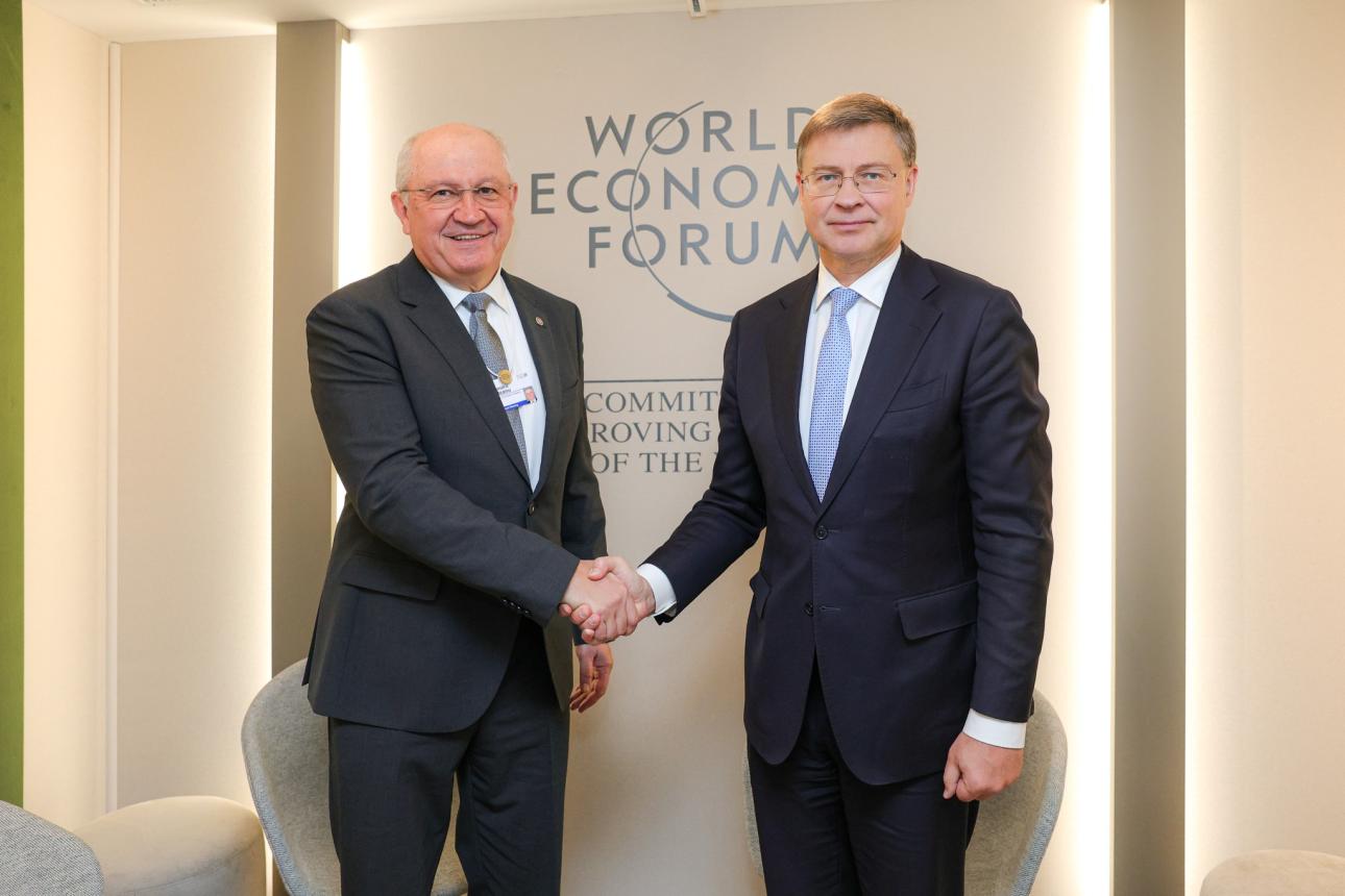 Prim-ministrul Alexandru Munteanu s-a întâlnit, la Davos, cu Valdis Dombrovskis, Comisarul UE pentru Economie și Productivitate, Implementare și Simplificare