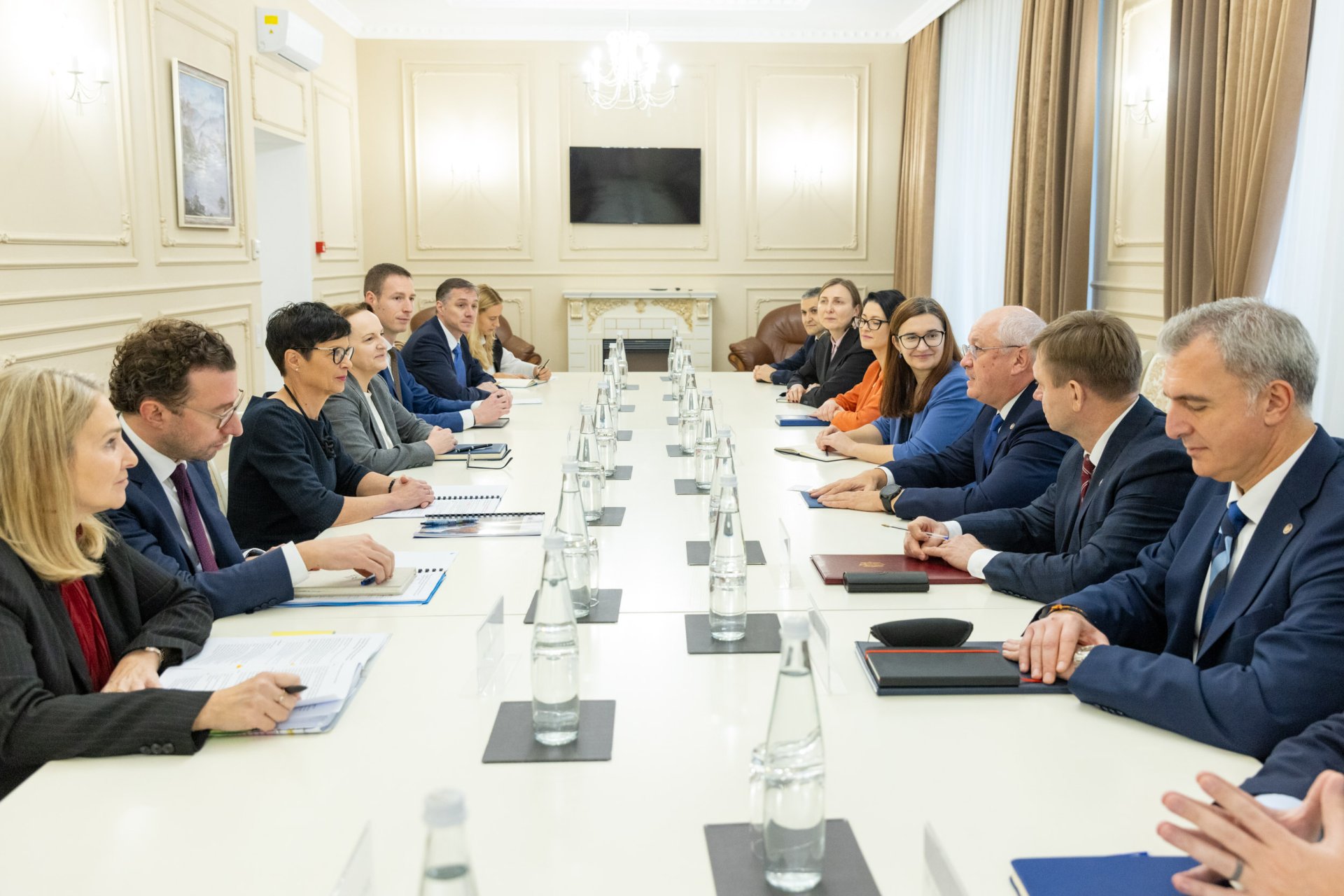 Oficialii au discutat pe marginea ultimului raport al Comisiei Europene, care arată că Moldova a făcut cel mai mare salt în nivelul de pregătire pentru aderare la UE. Sunt înregistrate rezultatele bune în mai multe domenii, inclusiv justiție, energie, educație, digitalizare și dezvoltare regională.