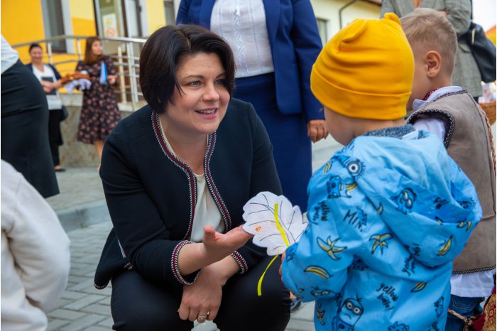 Șefa Guvernului a salutat copiii, părinții și cadrele didactice ale grădiniței din localitate, unii dintre cei mai importanți beneficiari ai proiectului.