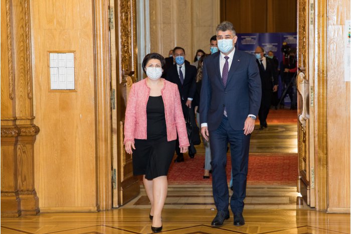 Chişinău, 9 dec. /MOLDPRES/. Vizita oficială a prim-ministrului Natalia Gavrilița la București a continuat la Palatul Parlamentului, unde a avut întrevederi cu Florin-Vasile Cîțu, președintele Senatului, și cu Marcel Ciolacu, președintele Camerei Deputaților, informează MOLDPRES.