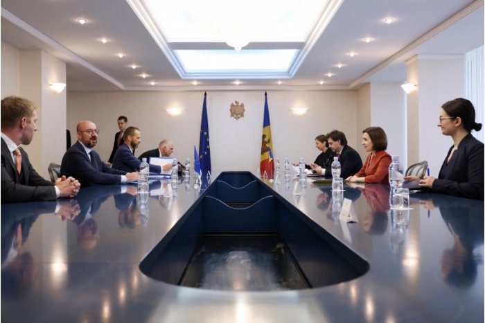 Chişinău, 4 mai. /MOLDPRES/. Președintele Republicii Moldova, Maia Sandu, a avut astăzi o întrevedere cu președintele Consiliului European, Charles Michel, care a efectuat o vizită în țara noastră, comunică MOLDPRES cu referire la Serviciul de presă al instituției prezidențiale.