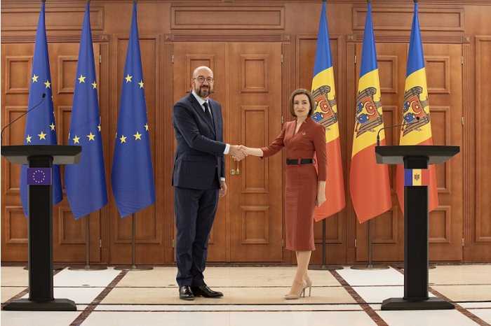 „Pentru a reduce efectele negative ale războiului asupra economiei, avem nevoie de o mai mare deschidere a pieței europene pentru produsele moldovenești și de permise pentru traversarea teritoriului UE pentru transportatorii noștri de mărfuri. Apreciem asistența multidimensională a Uniunii Europene, în special în această perioadă dificilă, și vom continua să muncim pentru ca, într-o bună zi, să intrăm în marea familie europeană, spre binele tuturor cetățenilor țării noastre”, a menționat șefa statului.