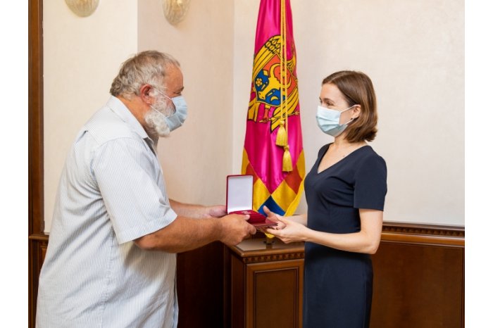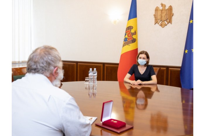 Chişinău, 28 iul. /MOLDPRES/. Președintele Republicii Moldova, Maia Sandu, s-a întâlnit miercuri cu sculptorul Dumitru Verdianu. Șefa statului i-a înmânat artistului plastic titlul onorific de „Maestru în Artă”, pe care i l-a conferit la începutul acestui an, cu prilejul Zilei Naționale a Culturii, în semn de recunoștință pentru promovarea valorilor spirituale ale neamului nostru și pentru succesele remarcabile în activitatea de creație, comunică MOLDPRES cu referire la Serviciul de presă al Președinției.