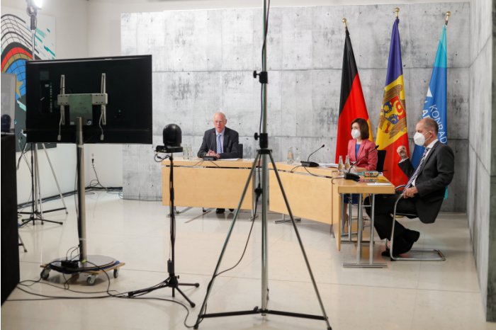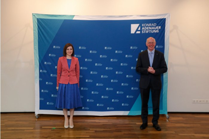 Chişinău, 19 mai. /MOLDPRES/. În prima zi a vizitei la Berlin, președintele Republicii Moldova, Maia Sandu, a avut astăzi o întrevedere cu președintele Fundației Konrad Adenauer (KAS), Norbert Lammert, și cu secretarul general adjunct al KAS, Gerhard Wahlers, relatează MOLDPRES cu referire la Serviciul de presă al instituției prezidențiale.