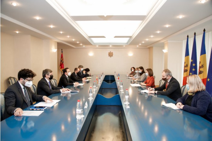 Chişinău, 16 mar. /MOLDPRES/. Președintele Republicii Moldova, Maia Sandu, s-a întâlnit astăzi cu ministrul pentru Afaceri Externe, UE și Cooperare al Regatului Spaniei, José Manuel Albares Bueno, care efectuează o vizită de lucru la Chișinău. Discuția s-a axat pe situația de securitate din regiune, ca urmare a războiului din Ucraina, impactul acesteia asupra Moldovei și pe agenda bilaterală, comunică MOLDPRES cu referire la Serviciul de presă al Președinției.