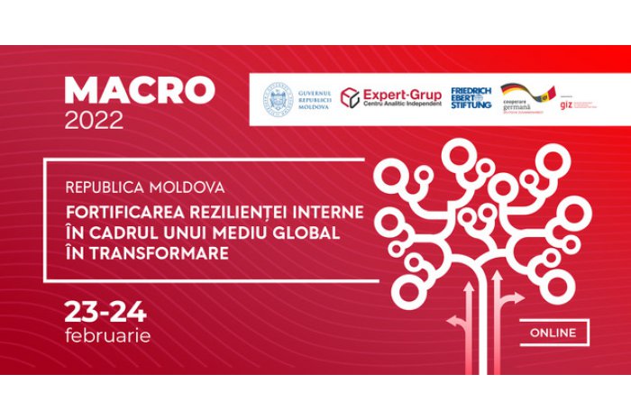 Conferința Anuală Internațională MACRO 2022 este organizată în parteneriat de către Guvernul Republicii Moldova, Centrul Analitic Independent „Expert-Grup” și Fundația „Friedrich Ebert”, cu suportul Agenției de Cooperare Internațională a Germaniei (GIZ) în Republica Moldova.