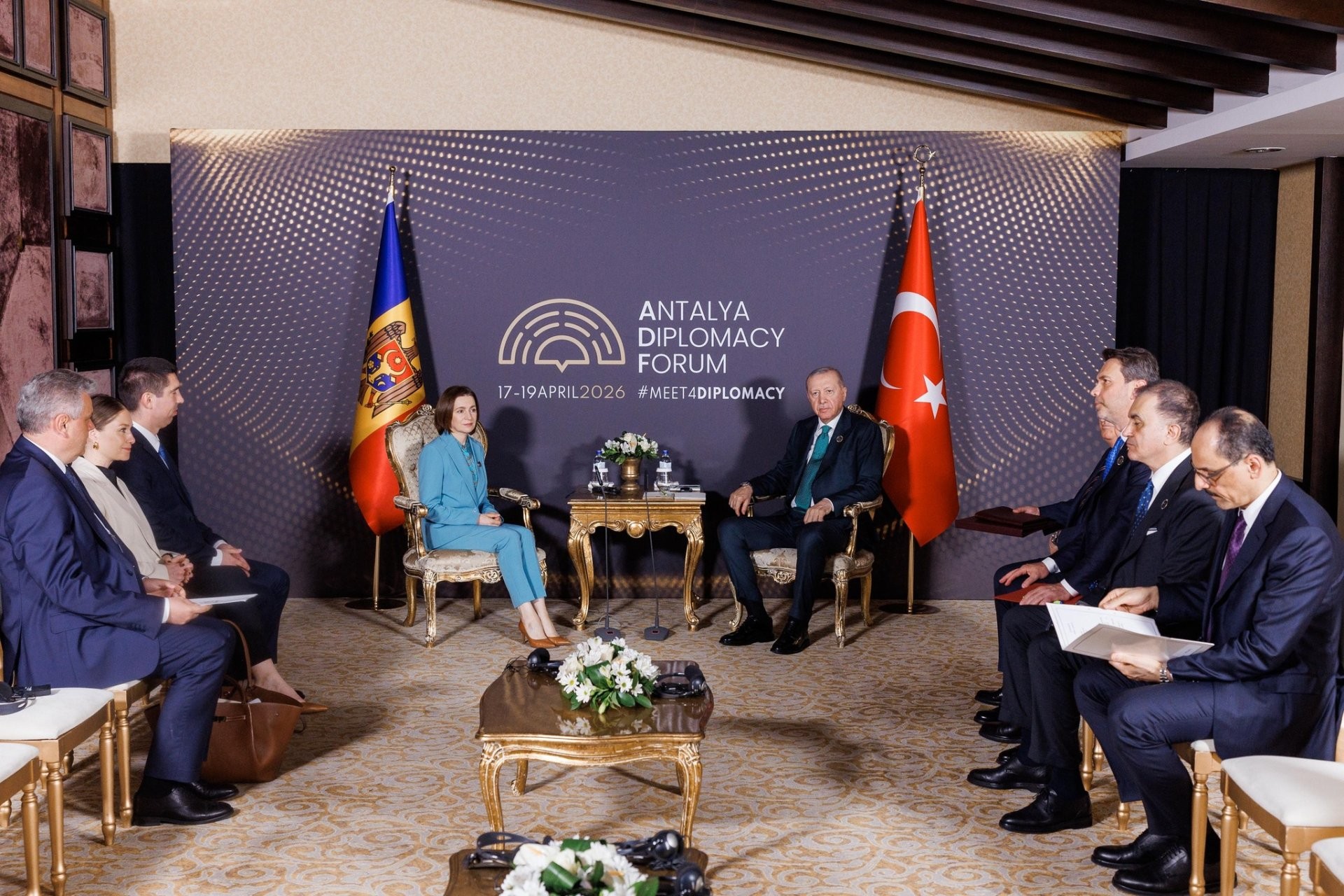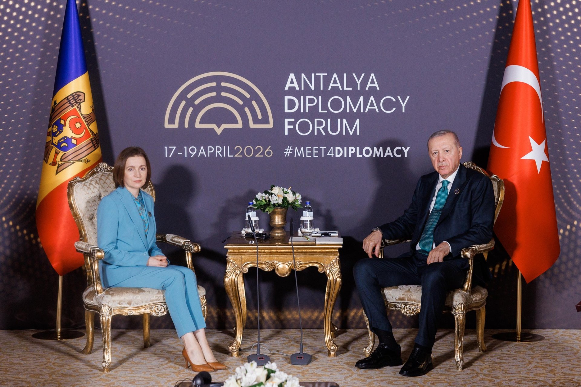 Șefa statului Maia Sandu a participat astăzi la Antalya Diplomacy Forum, desfășurat la Antalya, Republica Turcia, la invitația președintelui Recep Tayyip Erdoğan. În marja evenimentului, oficialul a avut mai multe întrevederi cu președinții Turciei, Azerbaidjanului, Sloveniei, Bosniei și Herțegovinei, informează MOLDPRES.